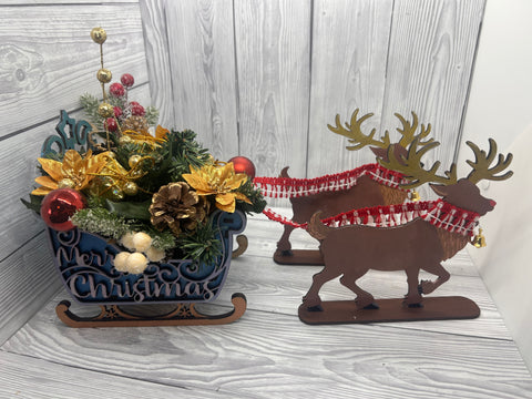 DIY MDF Reindeer & Sleigh Flat Pack Kit – Ready to Decorate in a choice of 2 designs
